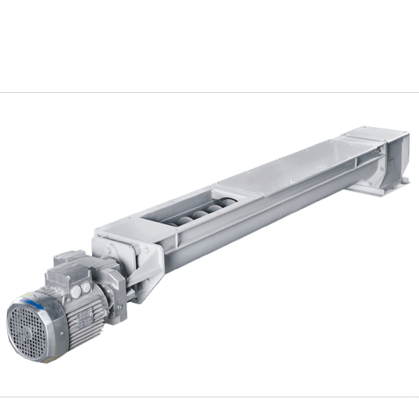 Chain conveyors are used for horizontal transfer of heavy or abrasive materials such as oilseed cakes or de-oiled meal. A chain-driven mechanism pulls paddles or scrapers along a fixed path, moving the material efficiently. These conveyors are robust and designed to handle large volumes with ease, ensuring consistent flow and durability under tough operating conditions.